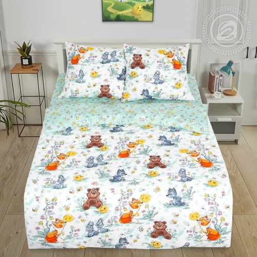 Коллекция:Поплин ясельныйМатериал:ПоплинЦвет:белый, оранжевый, зеленыйРисунок:детский персонаж, детский