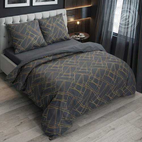 Коллекция:ЛЮКСМатериал:ПоплинЦвет:серый, золотой, графитРисунок:геометрия