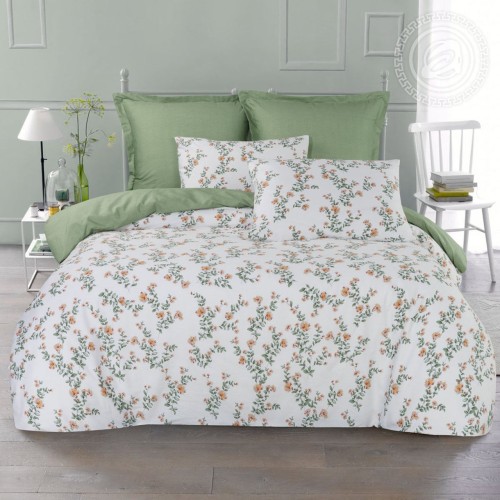 Коллекция:ПрестижМатериал:СатинЦвет:зеленый, оливковый, кремовыйРисунок:цветы