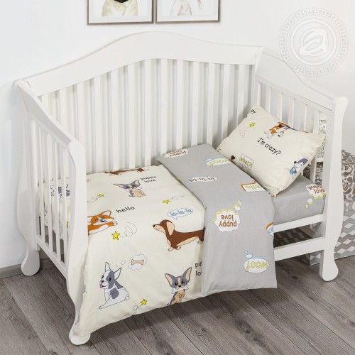 Коллекция:Поплин ясельныйМатериал:ПоплинЦвет:белый, бежевыйРисунок:детский