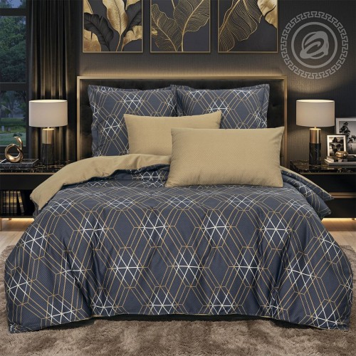 Коллекция:ЛЮКС с простыней на резинкеМатериал:ПоплинЦвет:серый, бежевый, синийРисунок:геометрия