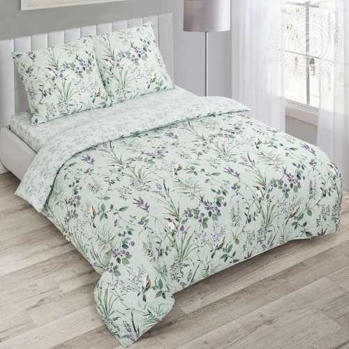 Коллекция:DE LUXEМатериал:ПоплинЦвет:зеленый, бежевый, фиолетовыйРисунок:цветы, природа