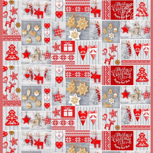 Коллекция:Рогожка 150 см.Материал:РогожкаЦвет:красный, бежевый, серыйРисунок:новый год