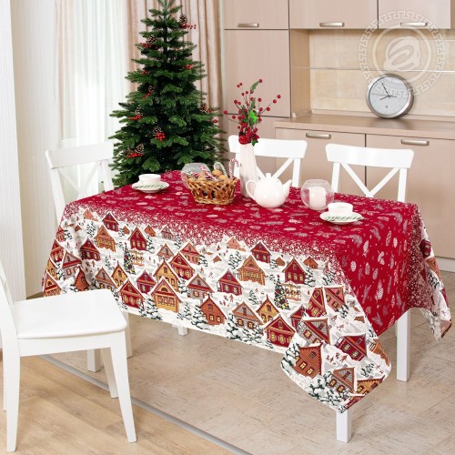 Коллекция:Рогожка 150 см.Материал:РогожкаЦвет:белый, красный, голубойРисунок:новый год, природа
