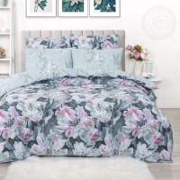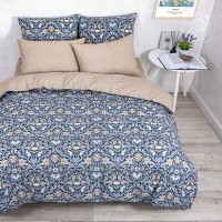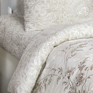 Фон рисунка «Адажио» решен через модный сейчас прием «омбре» - плавный переход от светлого пастельного оттенка к более темному бежево-коричневому. Вся пастельная часть кажется вытканной орнаментом, напоминающим ажурное кружево цвета слоновой кости. В более темной части рисунку придана фактура природного материала. На первом плане в оттенках белого, шоколадного, бежевого и коричневого изображены собранные с легкой намеренной небрежностью букеты полевых цветов и крупных листьев.