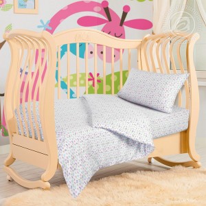 При всей своей легкости и ажурности рисунок «Бабочки» отличается строгостью и лаконичностью. В нем использовано только четыре основных цвета. Гармонию множеству разнообразных бабочек, кружащих в пространстве рисунка, дает сочетание серого цвета с белым и черным фоном. Необходимую ноту радости добавляют вкрапления красного, а завершают образ тонкие бордюрные полосы.