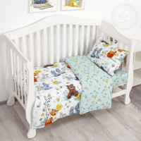 Комплект из бязи «Баиньки» создан с любовью и заботой для малышей. Ткань из 100% хлопка отвечает всем требованиям, предъявляемым к постельному белью для детской кроватки.