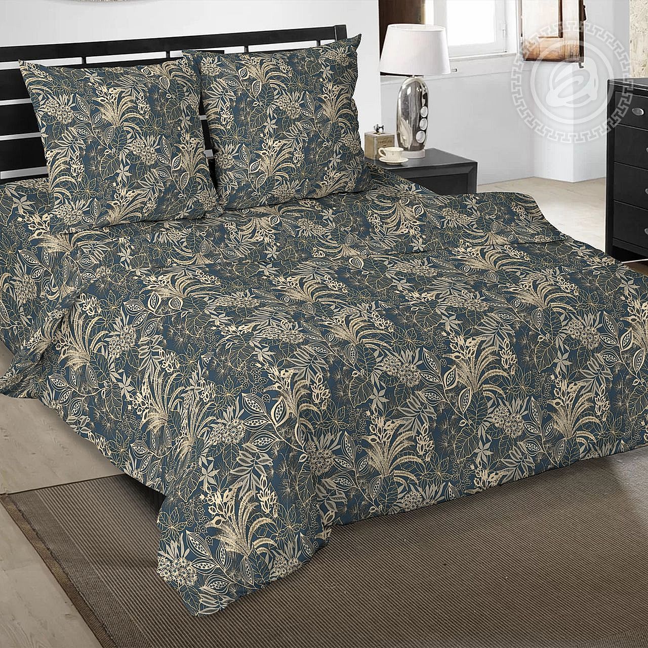 «Лоренце» – чарующий дизайн на ткани бязь. Композиция роскошна и элегантна. Она представляет собой великолепную картину с тропическими листьями и цветами. Авторский принт несет ощущение уюта и щепотку магии. Он преобразит интерьер и подарит волшебную атмосферу.