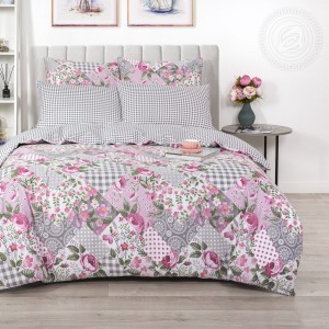 «Модистка» – бязь в стиле пэчворк. На ткани нежная лоскутная мозаика с цветочными мотивами и геометрией. Она выполнена в зефирных оттенках, с вкраплениями серого и розового тонов и украшена бутонами роз. Композиция освежит интерьер, внесет нотки воздушности и легкости в окружающую обстановку.