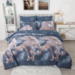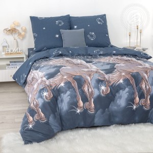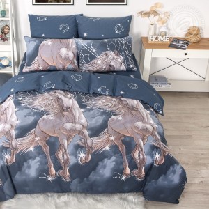 «Пегас» – яркий образ, который дарит вдохновение. На ткани бязь мифический конь, летящий сквозь облака. Его огромные крылья расправлены, что создает ощущение движения и легкости. Для рисунка выбраны оттенки белого и синего цветов с вкраплениями серебра, это делает композицию невероятно интересной, волшебной, воздушной.