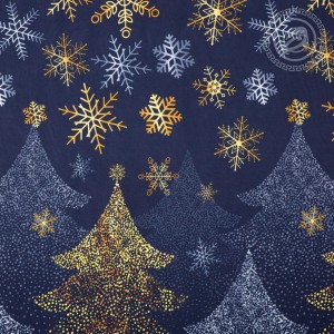 «Северная корона» – новогодняя ткань с волшебным дизайном. На бязи изображен сказочный лес в серебристо-золотой гамме. Глубокие оттенки и яркие детали создают настроение праздника. Авторский рисунок полон утонченности и элегантности. Чудесный подарок на Новый год.