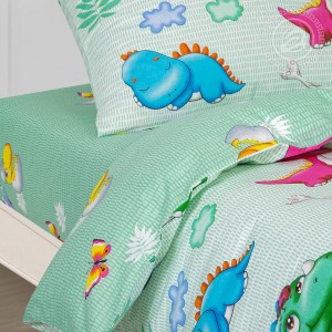 «Гоша» – постельное белье 1.5 бязь с детским принтом, которое особенно понравится тем, кто любит мультфильмы о динозавриках. На рисунке изображены желтые, красные, зеленые, синие дракончики. Малыши гуляют и отдыхают на зеленой полянке, любуются разноцветными бабочками и плывущими облаками. Каждый динозаврик неповторим и очарователен.