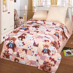 Для многих поколений самая главная и любимая игрушка из детства – плюшевый мишка, в обнимку с которым так хорошо засыпать. Именно очаровательные шоколадно-коричневые мишки с разноцветными бантами стали главными героями текстильного рисунка «Мой медвежонок». Фон решен в стиле печворк и напоминает мягкое деревенское покрывало. В его оформлении использованы теплые оттенки топленого молока, кремовый, беж, нежно-розовый, приглушенный белый. Еще одну ноту радости добавляют вкрапления красного – атласные банты, небольшие бутоны роз и надписи «my bear».
