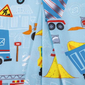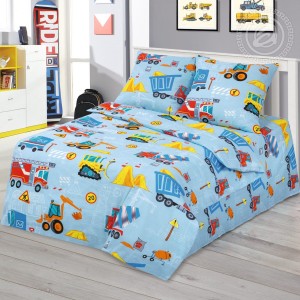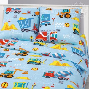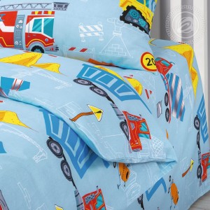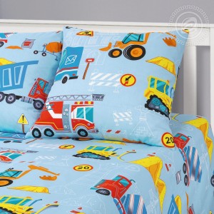 «Строитель» - суперхит для детской комнаты. На постельном белье из бязи яркая композиция, выполненная в красных, желтых, оранжевых и голубых цветах. На рисунке - грузовики и тракторы возят песок и строят дорогу. Мальчишки будут с удовольствием рассматривать детали красочного дизайна.