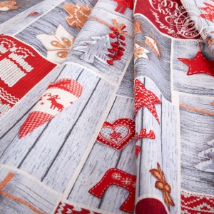 Ткань с забавным рождественским мотивом отлично подойдет для создания кухонных праздничных мелочей. Рогожка идеальный вариант для пошива скатертей, полотенец, салфеток, фартуков и прихваток. Использование этой ткани существенно упрощает кухонные хлопоты.