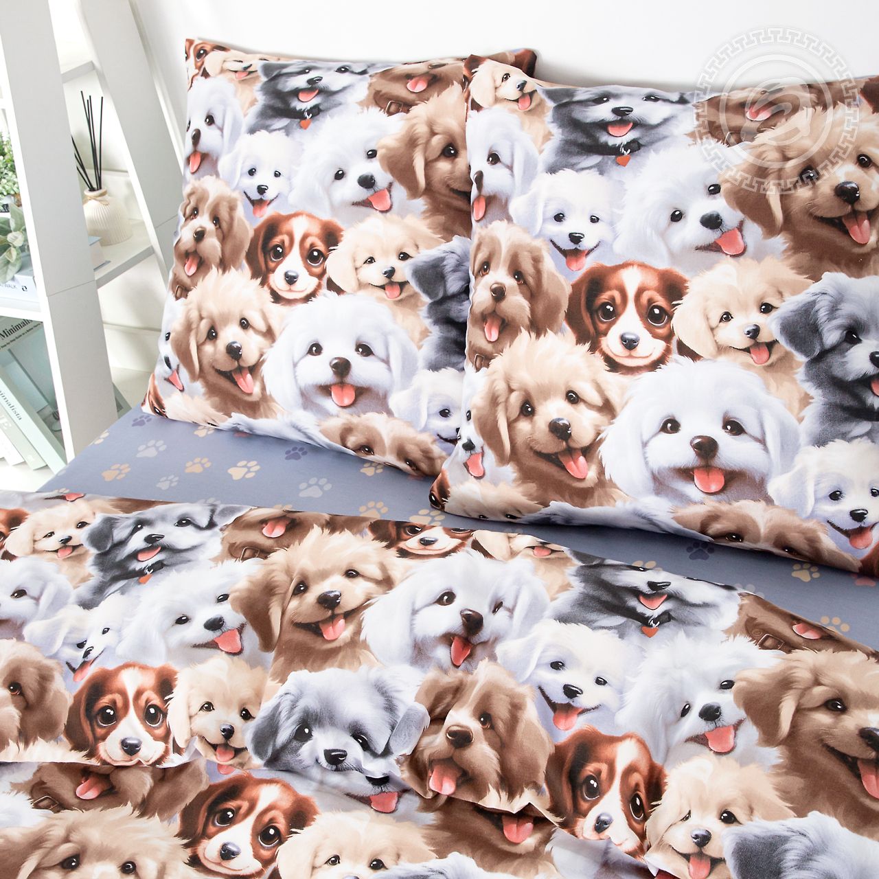 «Дружок» – постельное белье с собачками из хлопка, которое поднимет настроение и украсит спальню. Главные герои нашего дизайна – добрые и веселые щенки, которые умиляют с первого взгляда. Комплект из поплина с озорными героями станет чудесным дополнением интерьера.