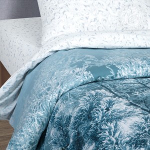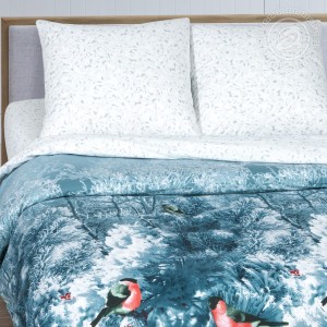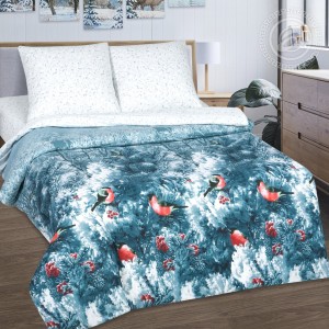 Комплект-мечта из поплина с потрясающей точностью передает морозный узор на стекле. Простыня и наволочка словно издают хруст и отдают прохладу. Рисунок зимнего леса, покрытого инеем, примет вас в свои объятия, а яркие снегири будут чутко охранять ваш сон.