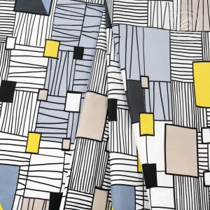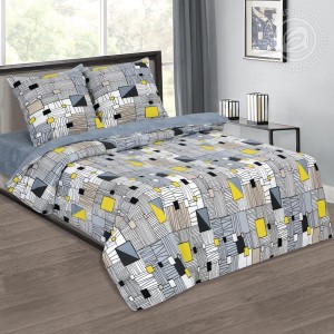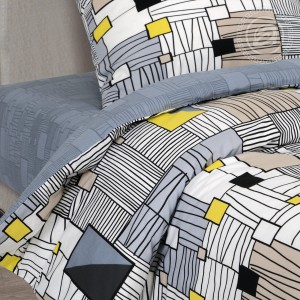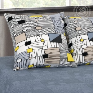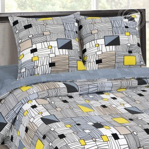«Витраж» - великолепная отсылка к искусству абстракционизма. Это смелый творческий эксперимент с геометрическими формами и цветовыми решениями. В новаторском дизайне комплекта сочетаются линии, прямоугольники, зигзаги. Бело-серая гамма разбавлена ярко-желтым и бежевым, что делает рисунок ярким и необычным.