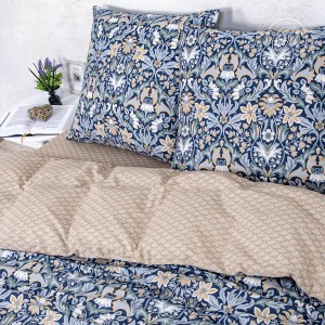 Что такое стиль ар-деко? Смелые линии, стилизованные элементы, приглушенные полутона. Всё это отражено в нашем одноименном дизайне. Постельное белье из поплина украшено оригинальными цветочными узорами с восточными мотивами. Рисунок выполнен в сдержанной гамме оттенков, что придает картине еще больше изысканности и шарма.