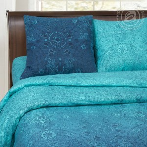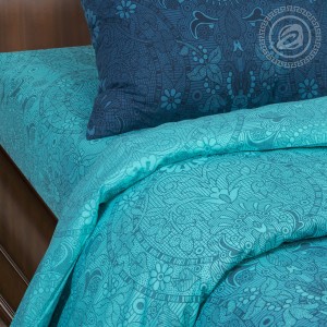 «Притяжение» - абсолютный лидер продаж. Красивая расцветка в технике градиента, необычные сочетания и переходы от темно-синего к голубому, авторский рисунок с орнаментом в виде сказочных растений, — это универсальный комплект постельного белья из ткани поплин 100% хлопок.