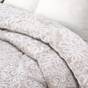 Стежка одеяла выполнена на одноигольной машине, что делает изделие объемным, теплым и воздушным.