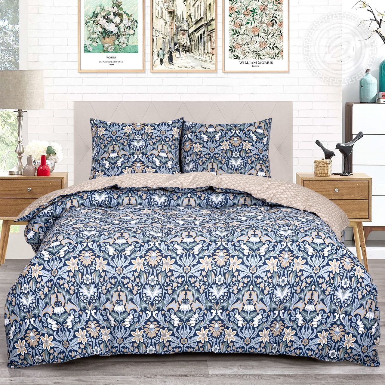 Что такое стиль ар-деко? Смелые линии, стилизованные элементы, приглушенные полутона. Всё это отражено в нашем одноименном дизайне. Постельное белье из поплина украшено оригинальными цветочными узорами с восточными мотивами. Рисунок выполнен в сдержанной гамме оттенков, что придает картине еще больше изысканности и шарма.