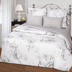 Комплект постельного белья «Мадемуазель» наполнит комнату светом и простором. Стильная модель выполнена в светлых тонах. По всей поверхности располагаются рисунки белых цветов с листочками. Они делают композицию нежной, загадочной и привлекательной. С таким постельным бельем каждая женщина будет чувствовать себя уверенной и женственной. Качественный отдых повлияет на хорошее самочувствие в течение всего дня.
