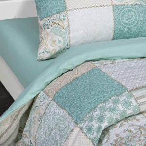 Пододеяльник стеганый (молния): 1 шт. - 215*143; Простыня: 1 шт. - 215*150; Наволочка (клапан): 2 шт. - 70*70;