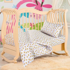 Пододеяльник на молнии: 1 шт. - 145*110; Простыня на резинке: 1 шт. - 60*120; Наволочка на молнии: 1 шт. - 40*60