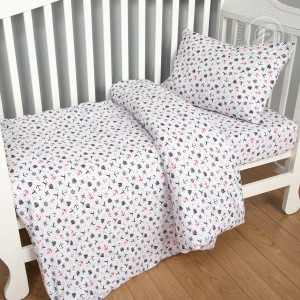 Пододеяльник на молнии: 1 шт. - 145*110; Простыня на резинке: 1 шт. - 60*120; Наволочка на молнии: 1 шт. - 40*60