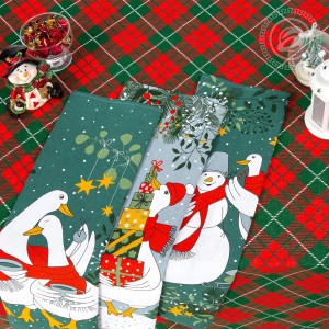 Внешний вид полотенец гармонично сочетается с дизайн-решением скатерти и создает единый стильный ансамбль.