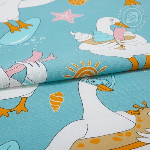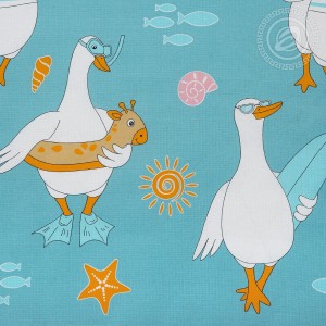 Здесь изображены милые и очень популярные пташки – гуси обнимуси. Эти веселые герои чудесно проводят время в тропических странах и наслаждаются отпуском. Они сёрфят по волнам, делают памятные фото, греются на солнышке. Авторский дизайн выполнен в морской тематике и украшен яркими деталями.