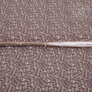 Если ваш день начинается с чашечки кофе, то дизайн «Эспрессо темный» – это именно то, что вам нужно. На хлопковой ткани атмосферный и модный рисунок с любимым напитком. Вся композиция состоит из маленьких и больших чашек кофе и надписей с его видами. Цветовая гамма спокойная, стильная, в теплых оттенках.