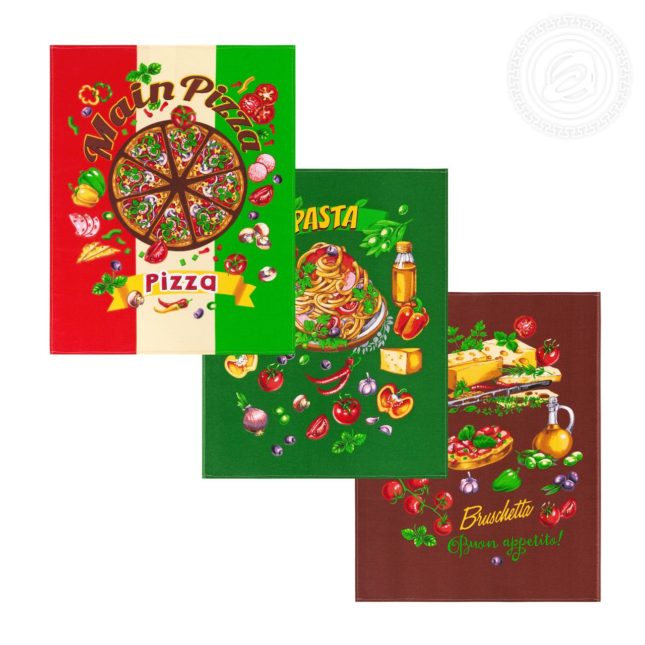 «Итальяно» - тематический дизайн для ценителей итальянской кухни. На красочном фоне любимые блюда: пицца с грибами, паста с ветчиной, овощи и брускетты, - настоящее пиршество для гурманов. Полотенца в итальянском стиле выглядят эффектно, ярко, атмосферно с великолепием вкусов и оттенков. Buon appetito!