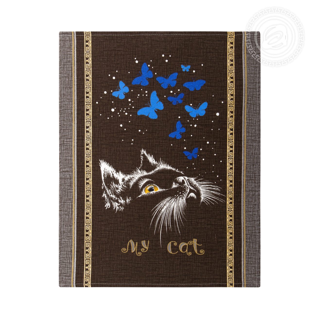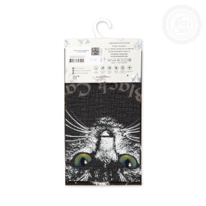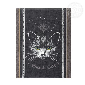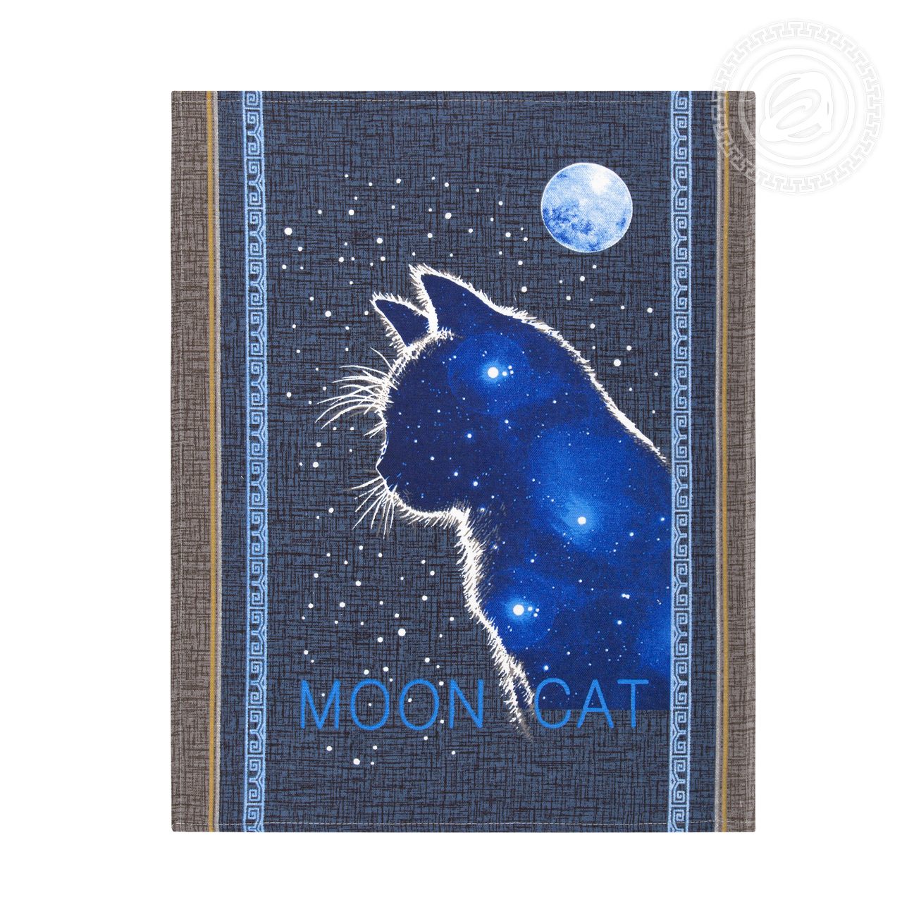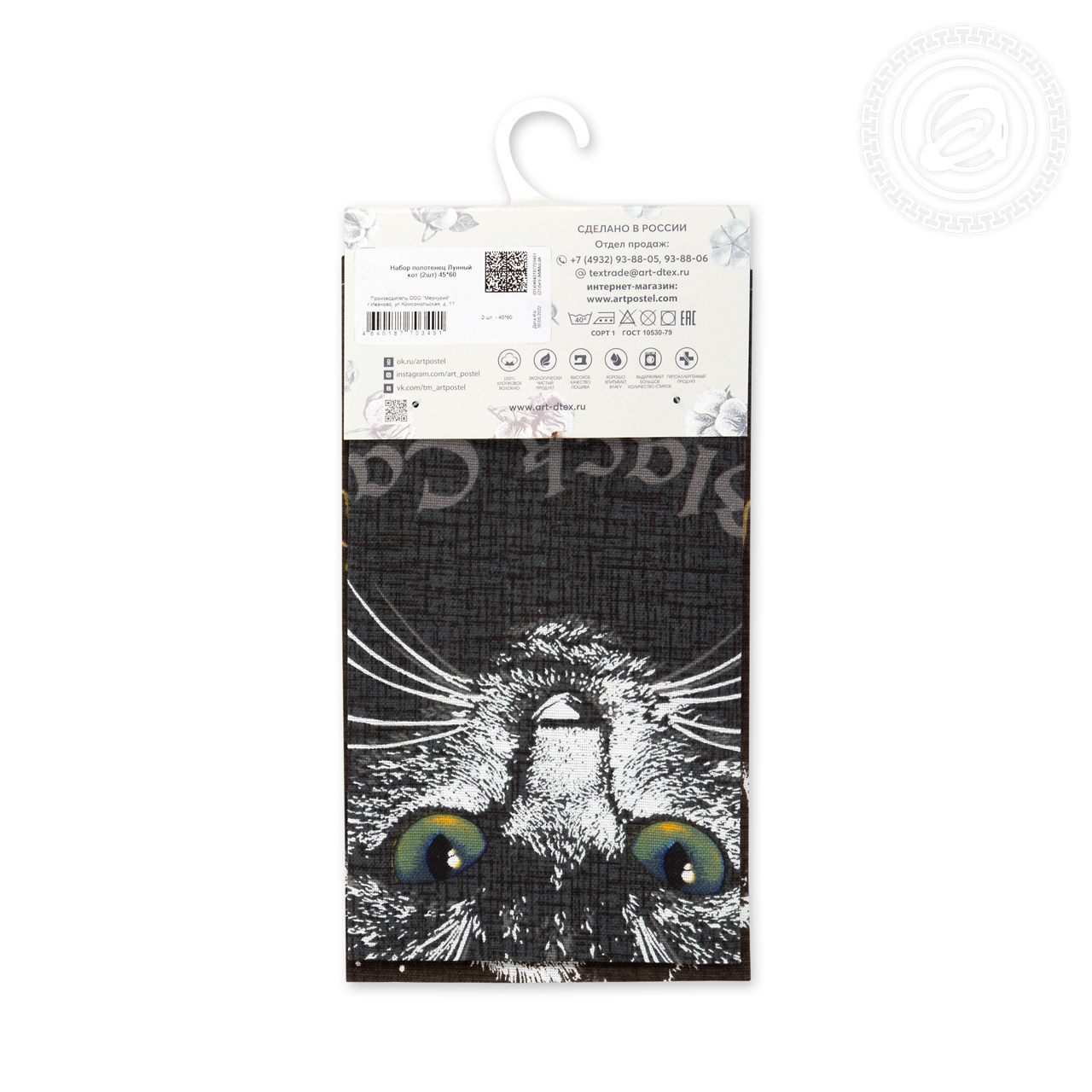 Эксклюзивный дизайн «Лунный кот» погружает в атмосферу тайн и загадок. На темном фоне черный кот – волшебный герой, который появляется в ночи с восходом Луны. Новогодний рисунок выполнен в интересной стилистике с сочетанием темно-коричневого и темно-синего цветов. На каждом полотенце из рогожки – мордочка кота с яркими глазами.