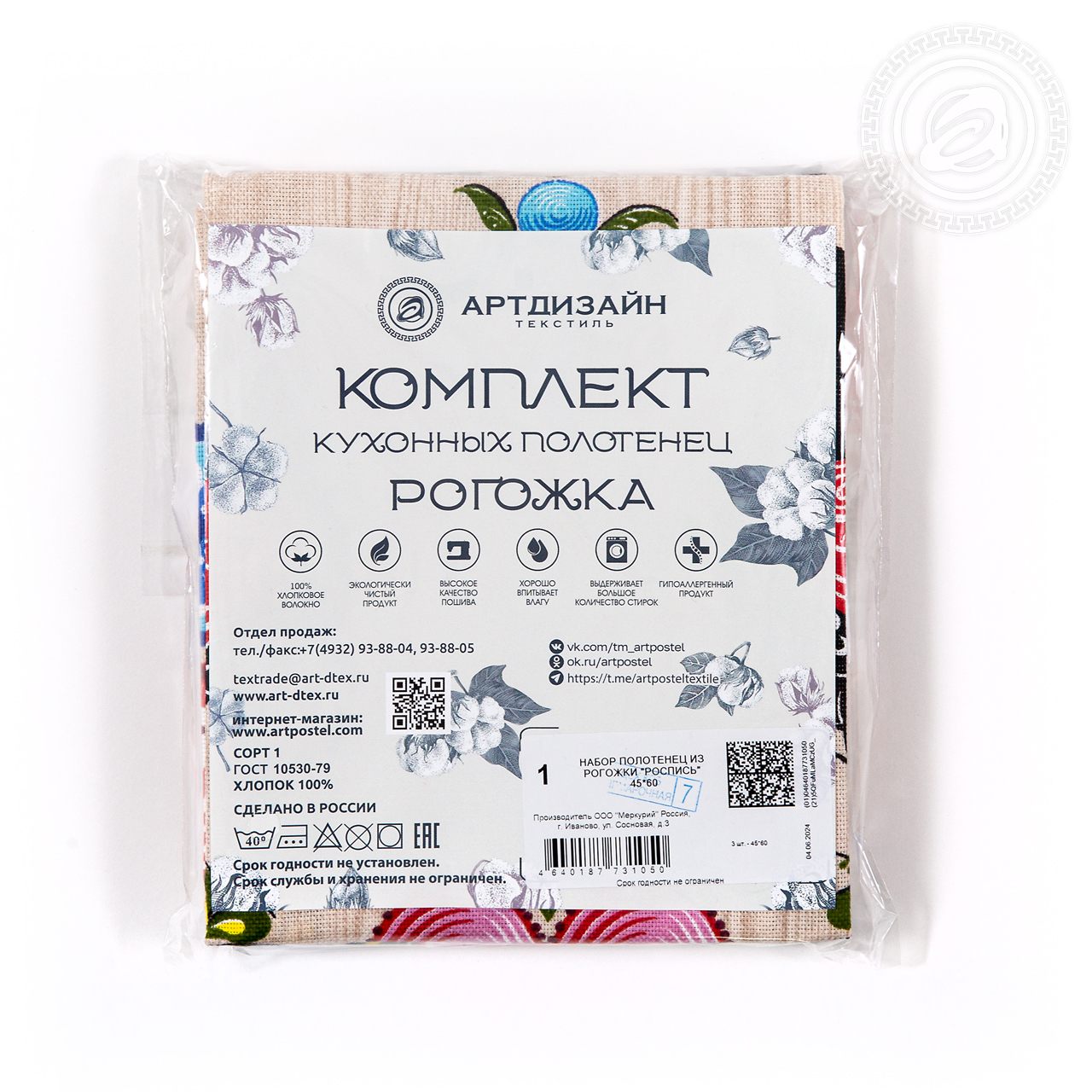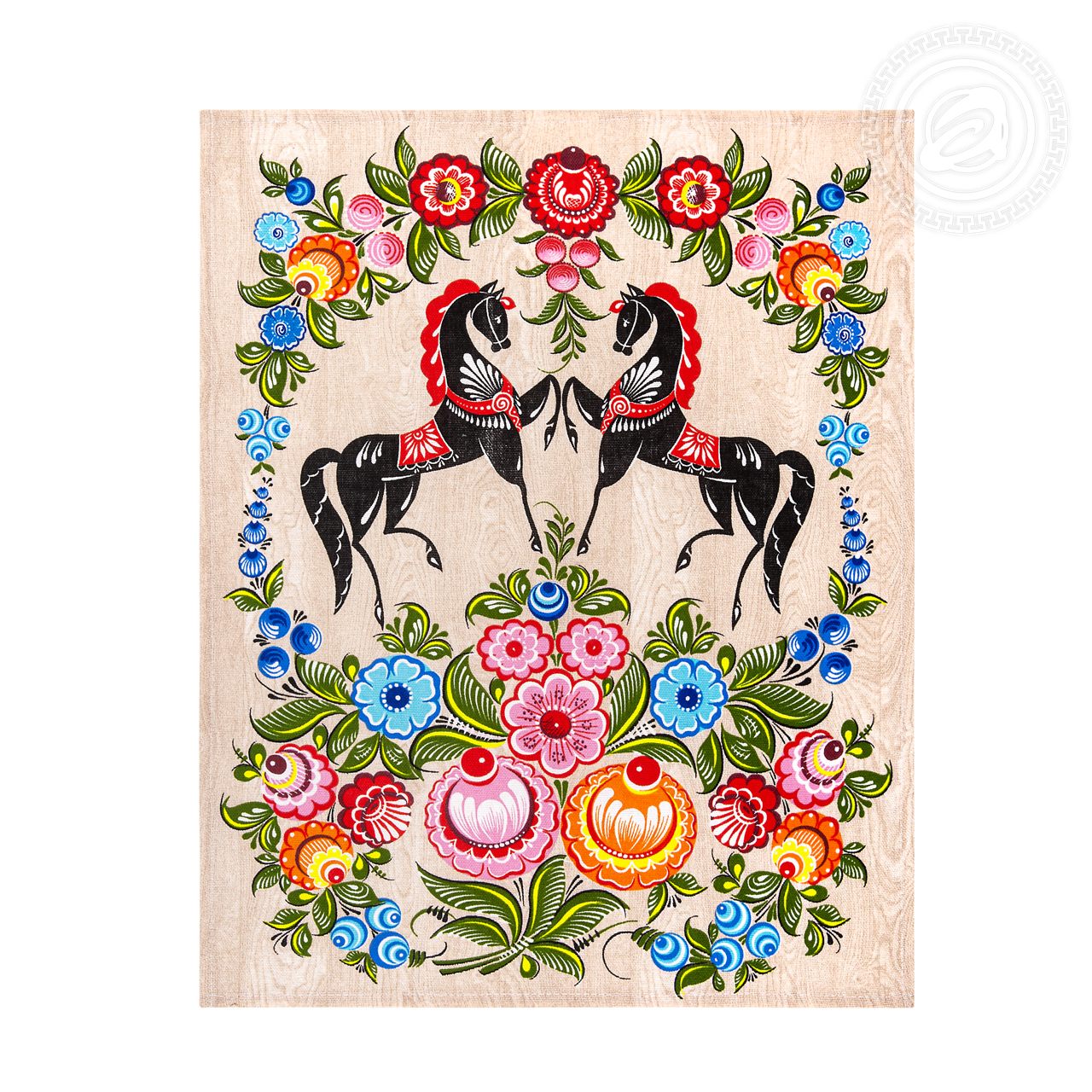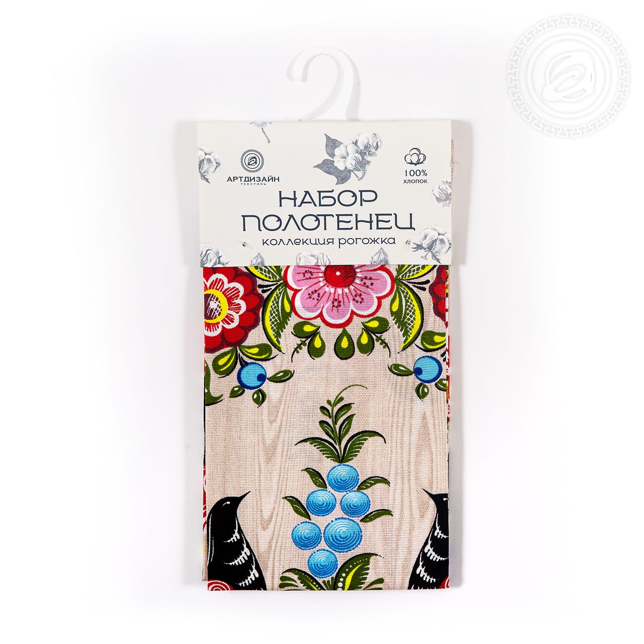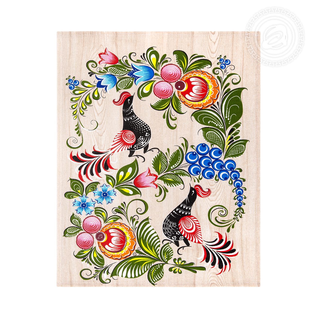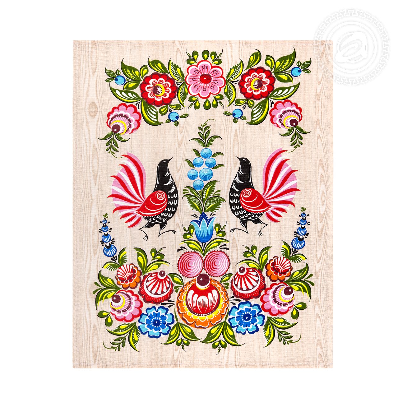 Полотенца из рогожки «Роспись» – это русский сувенир с колоритным орнаментом. На картинке элементы знаменитой городецкой росписи с яркими цветами и сказочными пташками. Они скомпонованы так, что создается ощущение волшебного сада, где цветут роскошные бутоны и поют экзотичные птички.