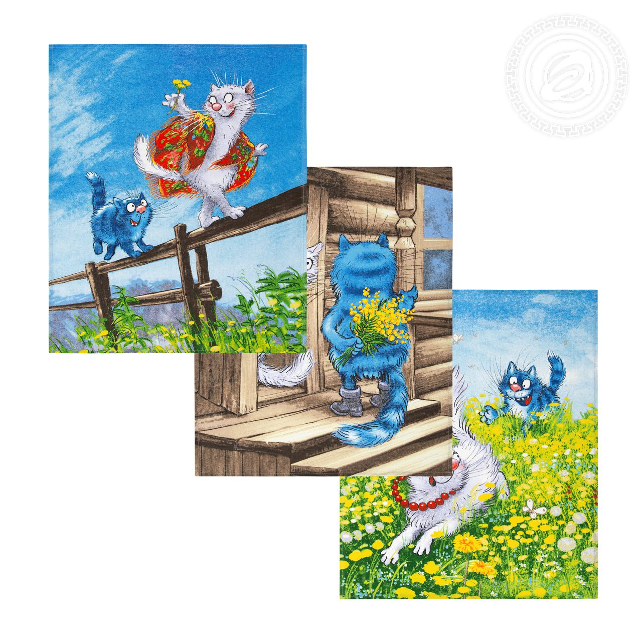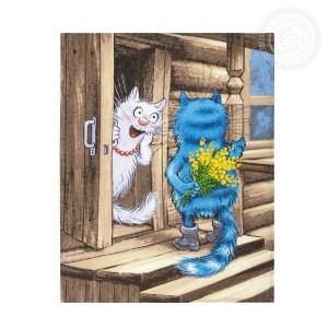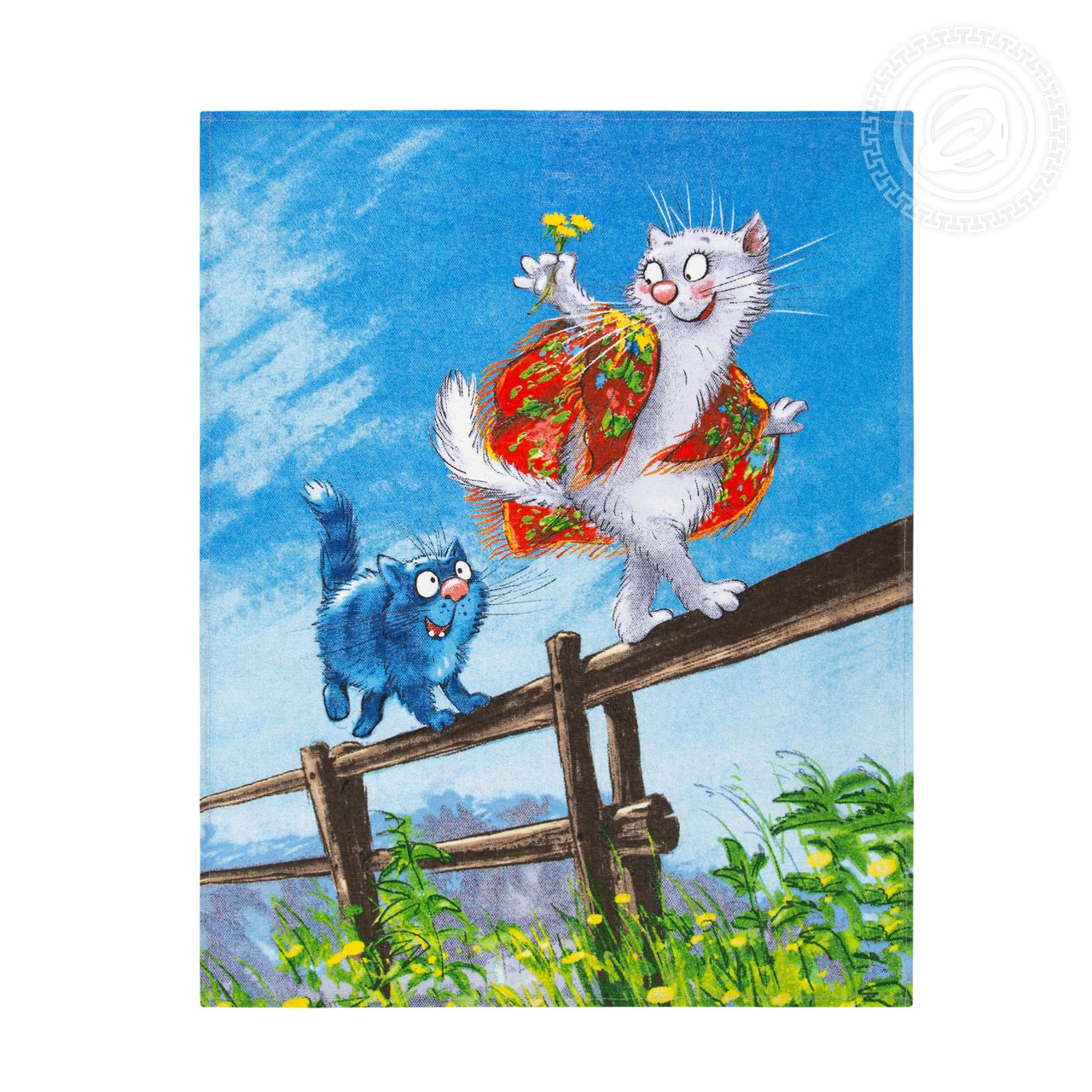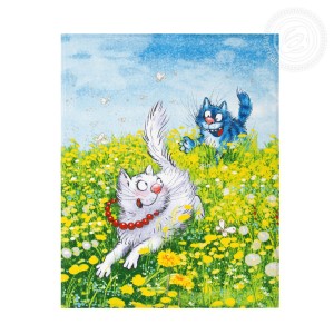 Яркие, забавные полотенца «Твикс» подарят замечательное настроение. На красочных рисунках – счастливые и веселые моменты из жизни влюбленной пары. Галантный кавалер-кот красиво ухаживает за своей дамой, дарит ей полевые цветы и провожает до дома по летним лугам.