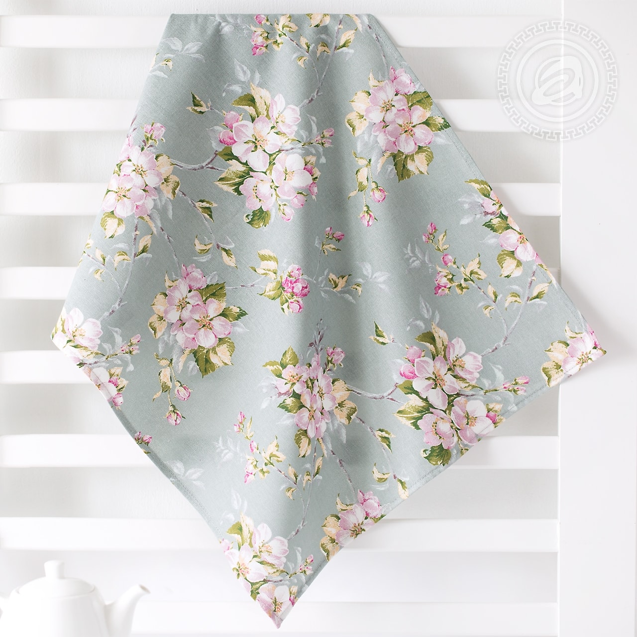 Серо-зеленый фон рисунка «Живопись» заполнен некрупным растительным принтом. Он изображает ветви цветущей вишни, «собранные» в изящные бутоньерки. Более крупные фрагменты композиции соединены друг с другом тонкими линиями-ветвями и изображениями нераспустившихся бутонов. Принт выполнен в сочетании оттенков нежно-розового и горчично-зеленого с легкими вкраплениями светло-желтого цвета.