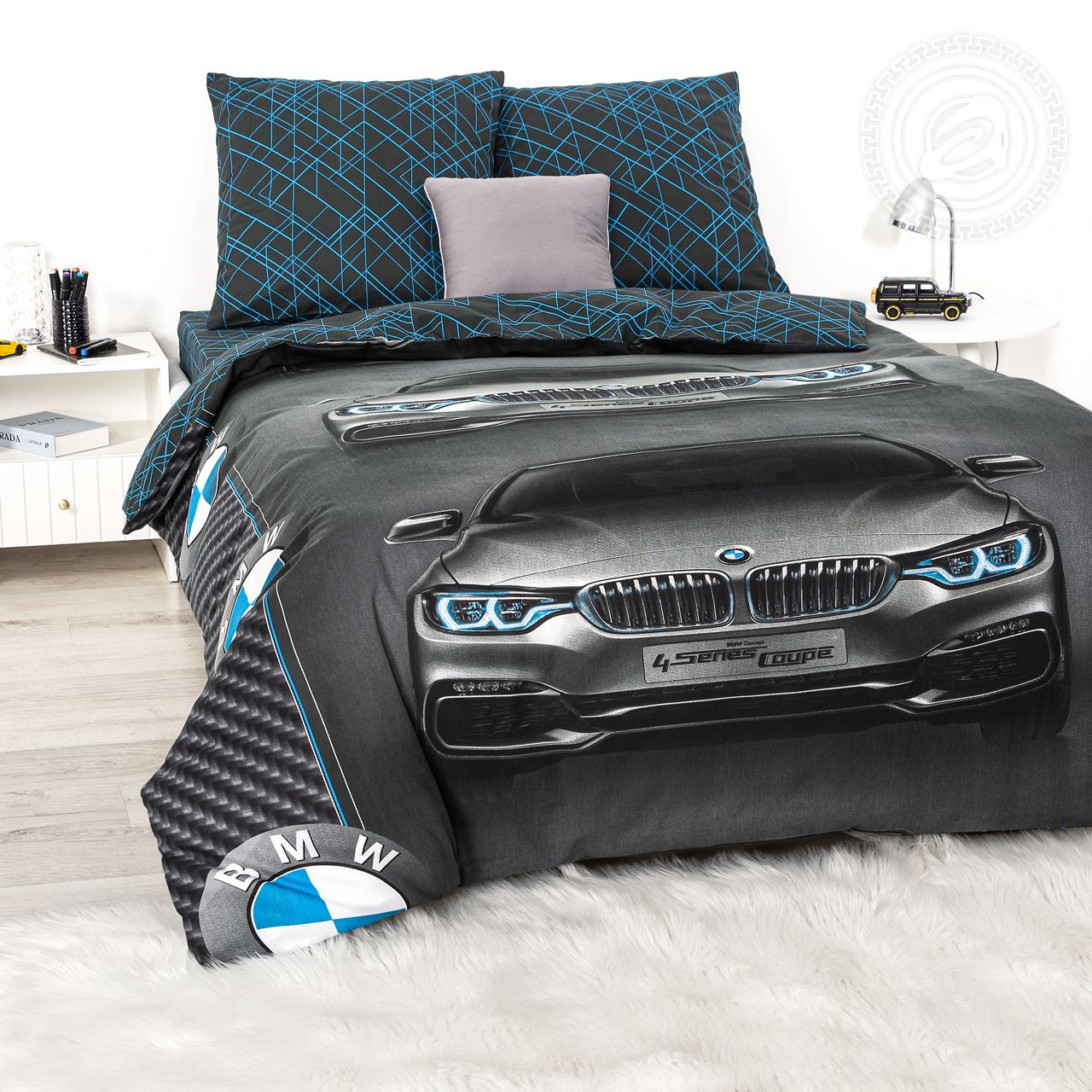 «Бумер» – стильный принт для детей и подростков. Темные тона, современный автомобиль, оригинальная геометрия – дизайн выражает скорость, динамику, тренды. Ткань поплин 150 с популярной машиной понравится юным автолюбителям и подарит массу ярких эмоций!