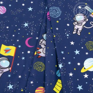 А вы когда-нибудь хотели полететь в космос? Прогуляться по Луне? Поплин для детского постельного белья с космическим дизайном исполнит все мечты. На ткани – россыпь сияющих звезд. Здесь летают желтые ракеты, и космонавты водружают флаги на новые планеты.