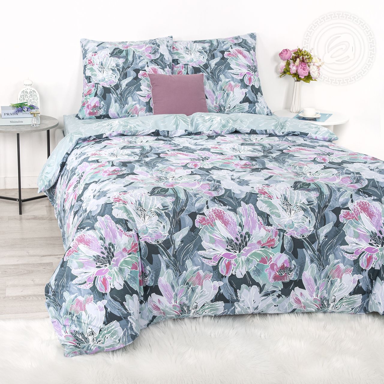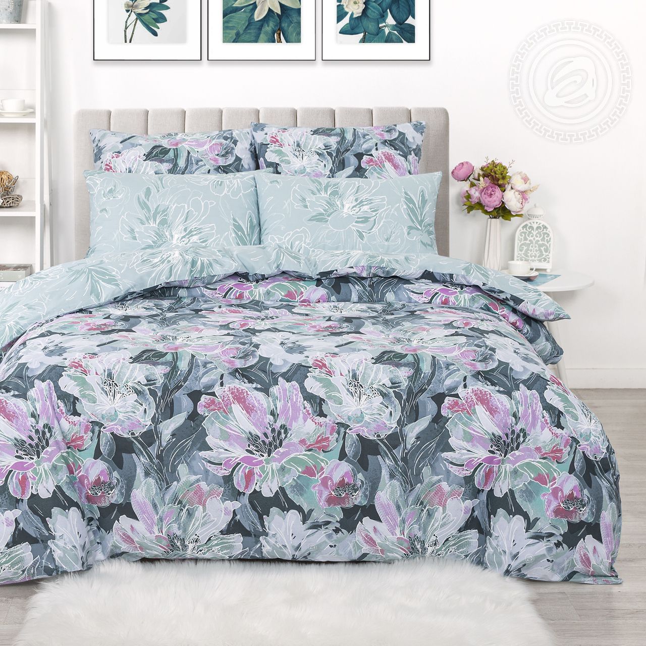 Крупные и выразительные цветы на ткани для постельного белья напоминают о весне и лете, о сказочных пейзажах и ярких солнечных лучах.