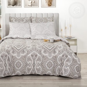 «Элегант» – сдержанный и лаконичный рисунок на ткани поплин. Непревзойденная классика, которая интересна и актуальна во все времена. Дизайн выполнен в теплой цветовой гамме с оригинальным орнаментом. Такой принт впишется в любой интерьер и добавит чувство спокойствия и комфорта.