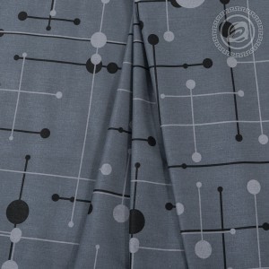 «Электра» - положительно заряженный дизайн с веселым и красочным принтом. На светлом фоне разноцветные атомы и молекулы, будто сошедшие со школьных учебников по физике. Серые, оранжевые и зеленые круги прекрасно сочетаются с бежевой палитрой.