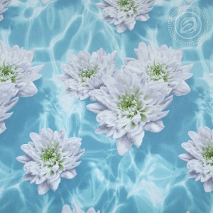 «Незнакомка» – поплин оптом от производителя с нежным цветочным принтом. На ткани невероятно элегантная картина с изящными деталями. Она напоминает летний пейзаж с кувшинками на водной глади. Авторский рисунок дарит удивительные впечатления и эмоции.