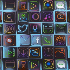 Теперь телефон – это и основной объект нашего рисунка. На голубом фоне значки популярных приложений и социальных сетей, которые легко найти в каждом мобильном устройстве.