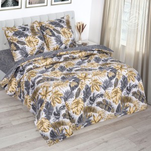 «Тропикано» – поплин оптом от производителя с экзотичным принтом. На хлопковой ткани уникальный рисунок с тропическими листьями папоротника. Уникальная композиция в теплых и спокойных оттенках универсальна для любой спальни. Это атмосферный дизайн с чарующими нотками.
