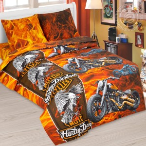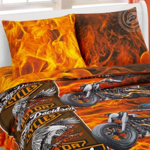 Для самых быстрых, ловких и смелых гонщиков наш огненный дизайн «Байкер». На комплекте из поплина легендарный байк в окружении ярких вспышек. Он летит по гоночной трассе быстрее ветра и берет только первые призы на всех чемпионатах.
