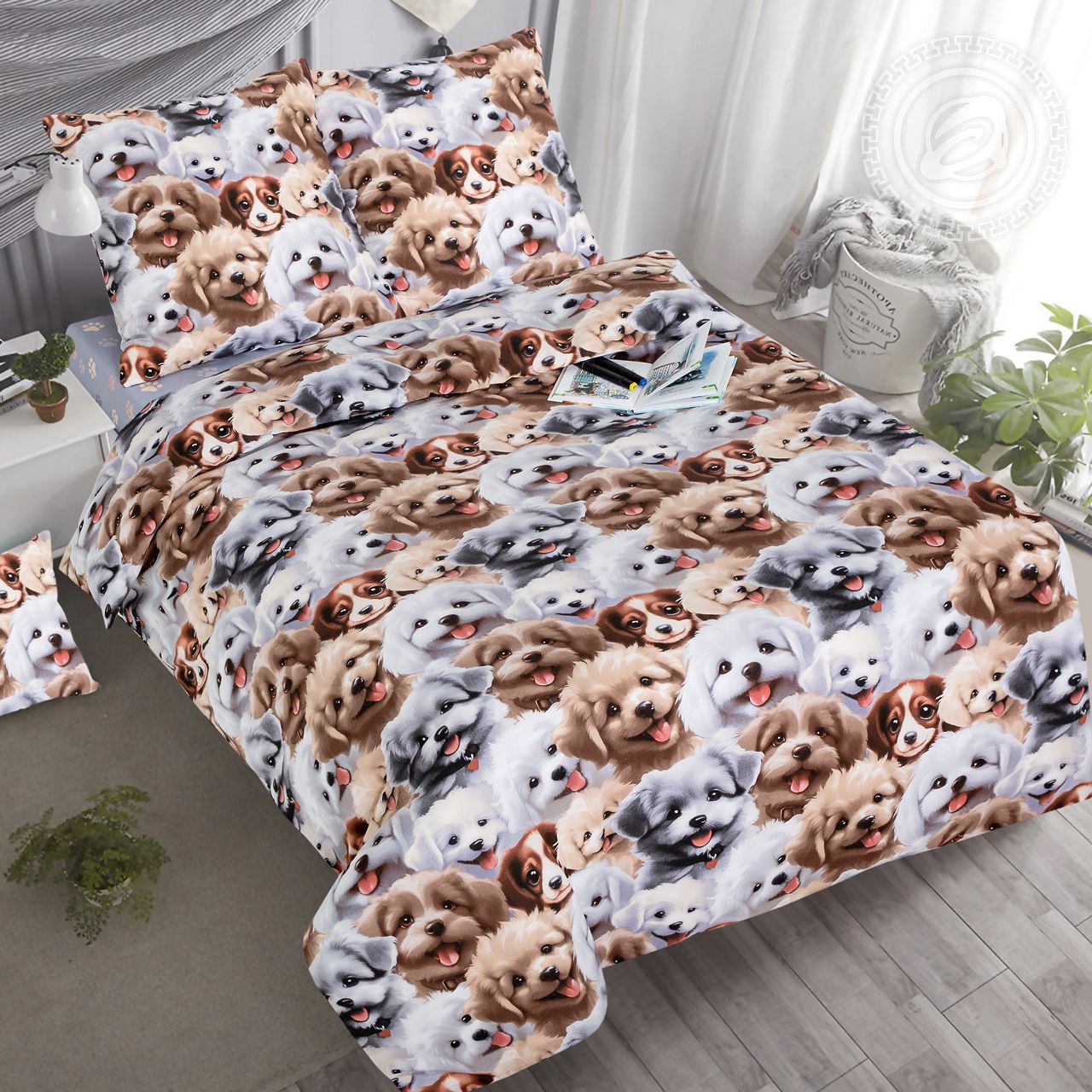 «Дружок» – постельное белье для мальчишек и девчонок. Главные герои нашего дизайна – это озорные и добрые щенки, которые любят гулять, шалить и грызть косточку. Они поднимут настроение и не дадут заскучать. Комплект из поплина с собачками порадует детей и украсит интерьер.