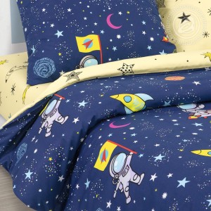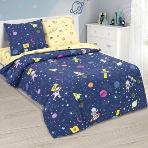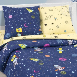 Космос. Бескрайний, далекий и таинственный. Здесь сияют звезды, крутятся планеты, летают ракеты и спутники. «Космический десант» - детский комплект из поплина с красивым и модным дизайном. Постельное белье из 100% хлопка выполнено в сине-желтой цветовой гамме. Рисунок в ярких красках покорит маленьких космонавтов и подарит счастливое ощущение полета.