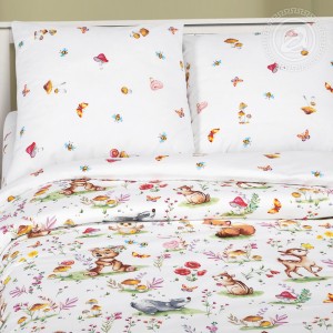 Детский комплект постельного белья от того и называется детским, что выполнен в соответствующем стиле. Маленькие зверята, цветочки, грибочки, бабочки и пчелки – вот из чего состоит новый рисунок. Каждому ребенку будет интересно найти себе маленького лесного друга, чтобы поиграть с ним перед сном. Высокое качество ткани и мастерство художника соединились воедино, чтобы показать, насколько постельное белье может быть приятным и комфортным. «Лесные друзья» - это не просто комплект, это любимый атрибут детской комнаты.